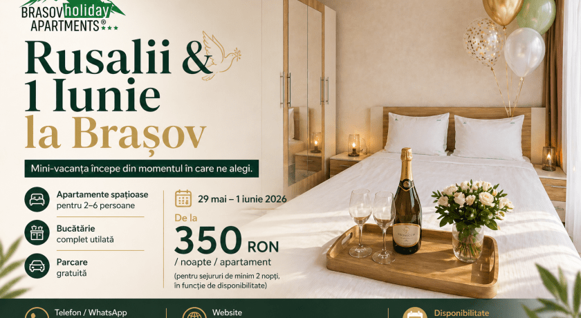 · Foarte frumos , totul de decurs bine recomand cu dragDragă Alexandra, Vă mulțumim din suflet pentru recenzia minunată! Suntem încântați să aflăm că ați avut o experiență plăcută la BRASOV HOLIDAY APARTMENTS și că totul a fost pe placul dumneavoastră. Ne străduim să oferim oaspeților noștri ospitalitate de cea mai bună calitate și este o bucurie să știm că eforturile noastre sunt apreciate. Vă așteptăm cu drag să reveniți!Sejur în April 2026 -
